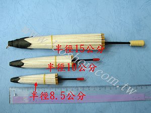 彩繪紙傘,白色綿紙傘,傘面半徑約28公分,傘面直徑56公分,傘骨長約36公分,未塗裝可自行DIY創作,有吊環,裝飾佈置容易.為1入零售售價,限裝飾,彩繪,跳舞用,不適當雨具.紙傘本身因係大張棉紙黏貼,張開後會略有空隙.
